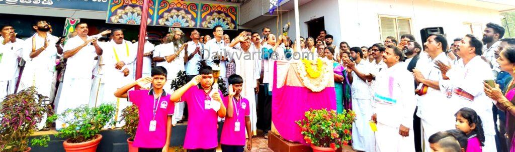 ಪೂರ್ವಾಹ್ನ ನಡೆದ ಧ್ವಜಾರೋಹಣ ಕಾರ್ಯಕ್ರಮವನ್ನು ನಿವೃತ್ತ ಪ್ರಾಂಶುಪಾಲ ರಾಘವೇಂದ್ರ ಭಟ್ ನೆರವೆರಿಸಿದರು.