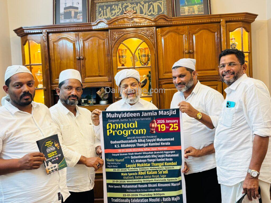 ಗಂಗಾವಳಿ| ಜ.19 ರಿಂದ 25ರ ವರೆಗೆ ನಡೆಯುವ ಮೂಹಿಯುದ್ದಿನ್ ಜಾಮಿಯಾ ಮಸೀದಿ ವಾರ್ಷಿಕೋತ್ಸವದ ಪೋಸ್ಟರ್ ಬಿಡುಗಡೆ