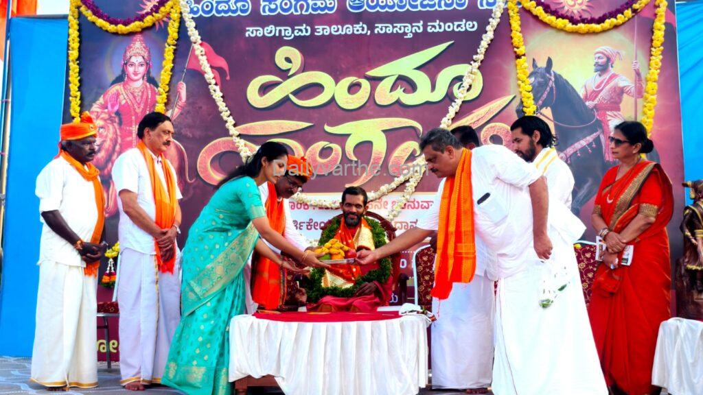 ಭಾನುವಾರ ಸಾಸ್ತಾನದ ಕಾರ್ತಿಕೇಯ ಎಸ್ಟೇಟ್ನಲ್ಲಿ ಹಿಂದೂ ಸಂಗಮ ಆಯೋಜನಾ ಸಮಿತಿ ಸಾಲಿಗ್ರಾಮ ತಾಲೂಕಿನ ಸಾಸ್ತಾನ ಮಂಡಲದ ಆಶ್ರಯದಲ್ಲಿ ನಡೆದ ಬೃಹತ್ ಹಿಂದೂ ಸಂಗಮ ಕಾರ್ಯಕ್ರಮದಲ್ಲಿ ಆಶೀರ್ವಚನ ನೀಡಿ ಮಾತನಾಡಿದ ಅವರು, ಗುಲಾಮಿ ಶಿಕ್ಷಣದ ಪರಿಣಾಮವಾಗಿ ಸಮಾಜ ಹಲವು ಸಮಸ್ಯೆಗಳನ್ನು ಎದುರಿಸುತ್ತಿದ್ದು, ಮುಂದಿನ ತಲೆಮಾರಿಗೆ ಸಂಸ್ಕಾರಯುತ ಶಿಕ್ಷಣ ನೀಡುವ ಹೊಣೆ ಪೋಷಕರ ಮೇಲಿದೆ ಎಂದರು. ಭಗವದ್ಗೀತೆ, ರಾಮಾಯಣ, ಮಹಾಭಾರತದಂತಹ ಕಾವ್ಯಗಳ ಅಧ್ಯಯನದಿಂದ ಧರ್ಮಜಾಗೃತಿ ನಿರಂತರವಾಗಬೇಕು ಎಂದು ಕರೆ ನೀಡಿದರು.