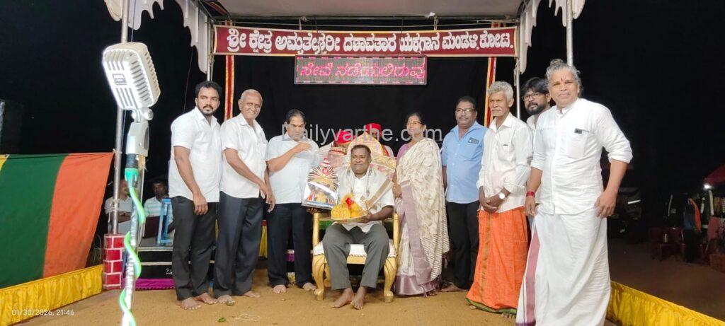 ಅಮೃತೇಶ್ವರಿ ದೇವಸ್ಥಾನದ ವ್ಯವಸ್ಥಾಪನ ಸಮಿತಿಯ ಅಧ್ಯಕ್ಷ ಆನಂದ್ ಸಿ. ಕುಂದರ್ ಅವರು ಕೋಟ ಸುರೇಶ್ ಅವರಿಗೆ ಗೌರವ ಪುರಸ್ಕಾರ ನೀಡಿ ಅಭಿನಂದಿಸಿದರು.