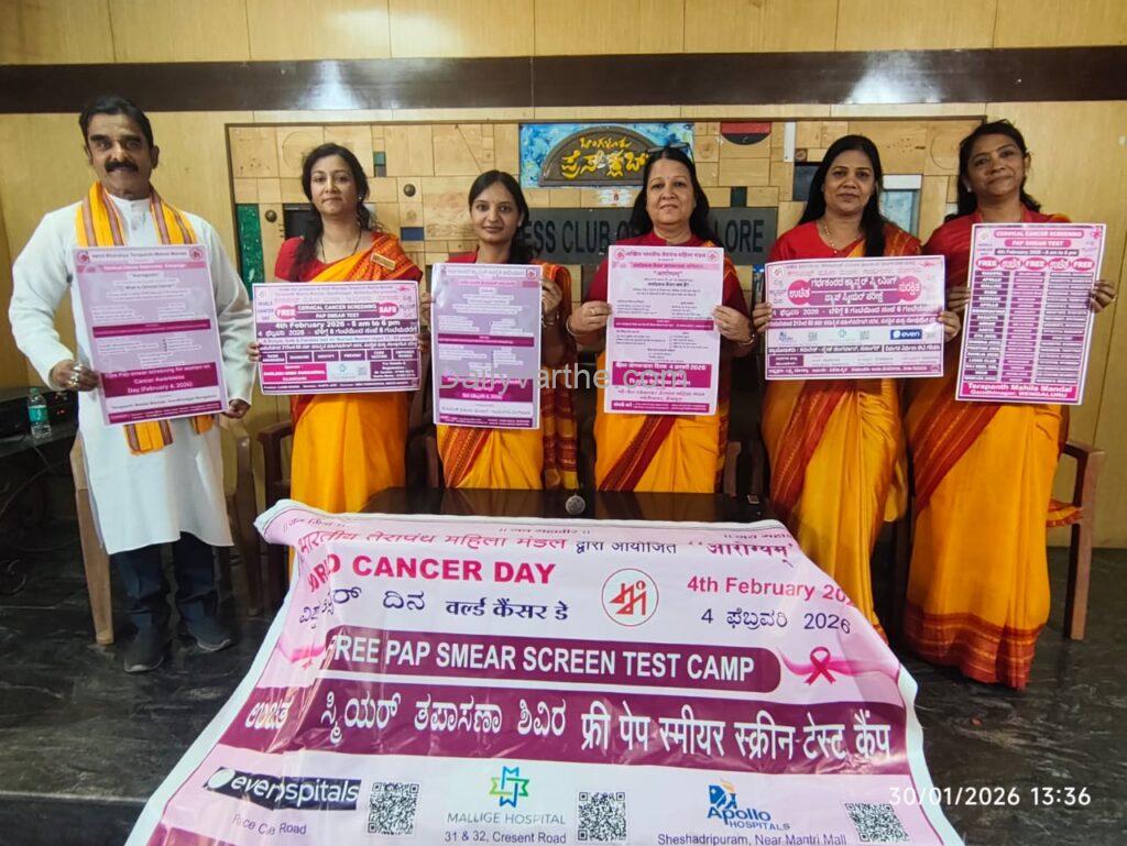 ಮಹಿಳೆಯರ ಆರೋಗ್ಯಕ್ಕೆ ಒತ್ತು: ಫೆ.4ರಂದು ಉಚಿತ ಸರ್ವೈಕಲ್ ಕ್ಯಾನ್ಸರ್ ತಪಾಸಣಾ ಶಿಬಿರ
