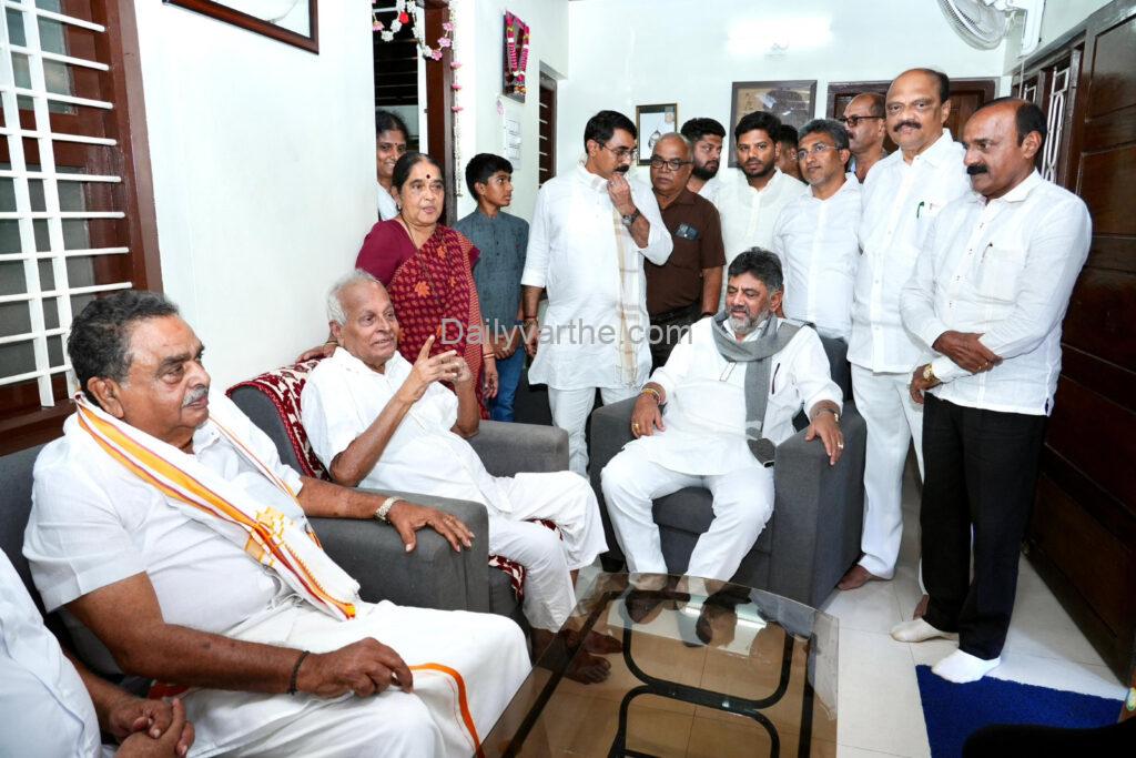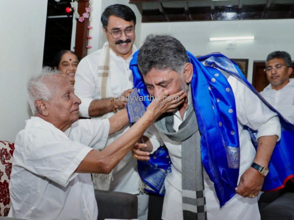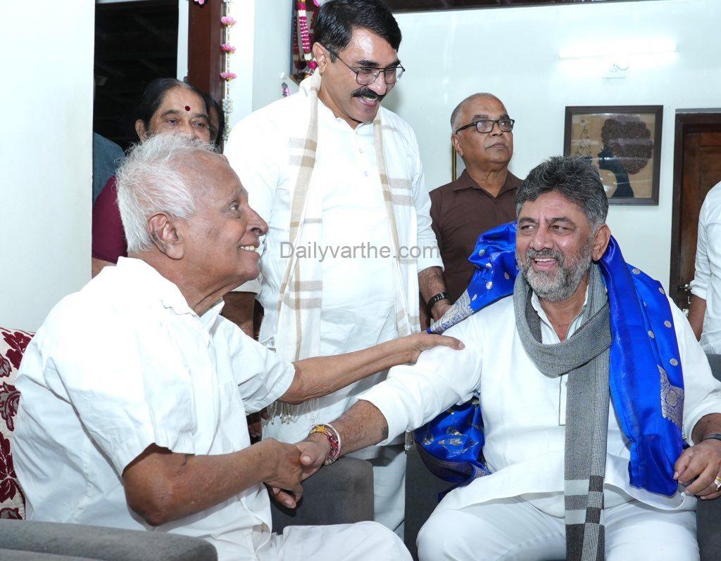 ಕಾಂಗ್ರೆಸ್ನ ಹಿರಿಯ ನಾಯಕ ಜನಾರ್ದನ ಪೂಜಾರಿ ನಿವಾಸಕ್ಕೆ ಡಿಸಿಎಂ ಡಿಕೆಶಿ ಭೇಟಿ; ಆರೋಗ್ಯ ವಿಚಾರಣೆ, ರಾಜಕೀಯ ಚರ್ಚೆ