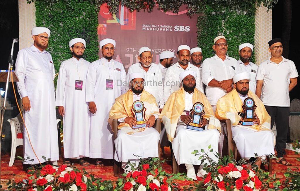 ಕೋಟ: ಉಮಾರುಬೂನುಲ್ ಖತಾಬ್ ಜುಮ್ಮಾ ಮಸೀದಿ, ಮಧುವನ ಇದರ ಅಧೀನದಲ್ಲಿರುವ ಹಯಾತುಲ್ ಇಸ್ಲಾಂ ಮದರಸದ ಗುರುಗಳಾದ ಶಾಫಿ ಸಅದಿ, ಇಬ್ರಾಹಿಂ ಮದನಿ ಹಾಗೂ ಇಸ್ಮಾಯಿಲ್ ಸಅದಿ ಅವರನ್ನು ಸುನ್ನಿ ಬಾಲ ಸಂಘ (SBS) ವತಿಯಿಂದ ಆಯೋಜಿಸಲಾದ ಅಜ್ಮೀರ್ ಮೌಲುದ್ ಕಾರ್ಯಕ್ರಮದಲ್ಲಿ ಗೌರವಪೂರ್ವಕವಾಗಿ ಸನ್ಮಾನಿಸಲಾಯಿತು.