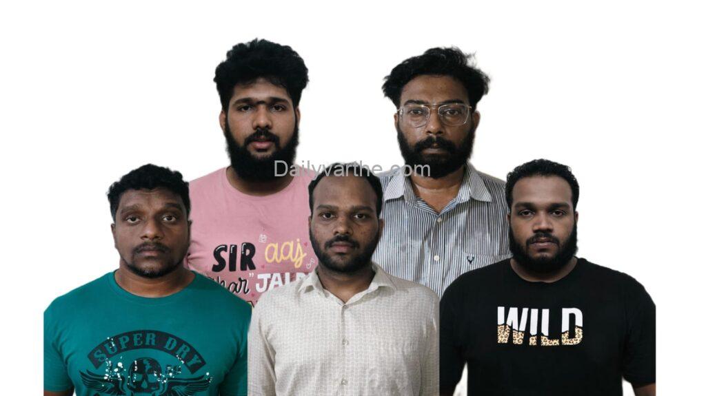ಬಂಧಿತ ಆರೋಪಿಗಳನ್ನು ಕುಂಜಿಬೆಟ್ಟು ನಿವಾಸಿ ಅಕ್ಷತ್ ಪೈ (27), ಸುಶಾಂತ್ (25), ರಮಾನಂದ ಪೈ (42), ಸಂತೋಷ್ ಕೊರಗ (38) ಹಾಗೂ ಅಲೆವೂರು ನಿವಾಸಿ ಶಂಶಾಂಕ್ ನಾಯಕ್ (25) ಎಂದು ಗುರುತಿಸಲಾಗಿದೆ.