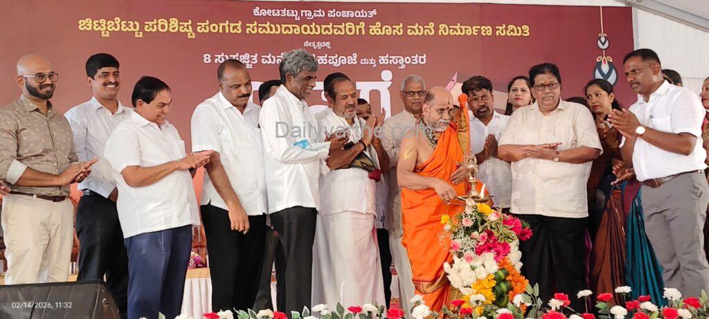 ಶನಿವಾರ ಕೋಟತಟ್ಟು ಗ್ರಾಮಪಂಚಾಯತ್ ಹಾಗೂ ದಾನಿಗಳ ಸಹಕಾರದಿಂದ ನಿರ್ಮಾಣಗೊಂಡ ಚಿಟ್ಟಿಬೆಟ್ಟು ಕೊರಗ ಕಾಲೋನಿಯ ಎಂಟು ಮನೆಗಳ ಲೋಕಾರ್ಪಣಾ ಸಮಾರಂಭ ‘ಆಸರೆ–2026’ ಕಾರ್ಯಕ್ರಮದಲ್ಲಿ ಆಶೀರ್ವಚನ ನೀಡಿದ ಅವರು, ಕೊರಗ ಸಮುದಾಯದಂತಹ ಪರಂಪರೆಯ ಮುಗ್ಧ ಜೀವಿಗಳಿಗೆ ಆಸರೆ ಒದಗಿಸಿರುವುದು ಅತ್ಯಂತ ಶ್ರೇಷ್ಠ ಕಾಯಕ ಎಂದು ಶ್ಲಾಘಿಸಿದರು.