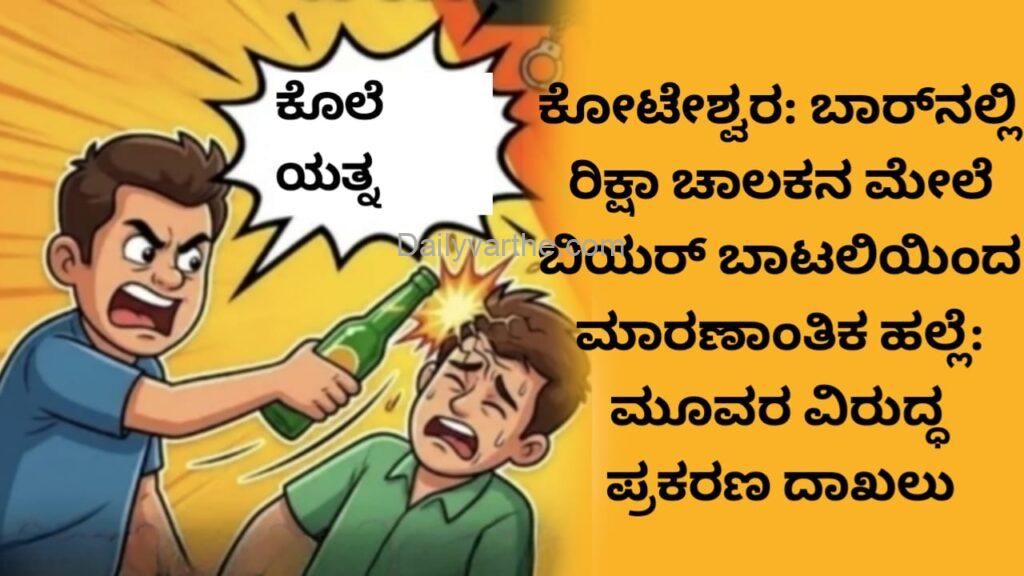 ಕೋಟೇಶ್ವರ: ಬಾರ್ನಲ್ಲಿ ರಿಕ್ಷಾ ಚಾಲಕನ ಮೇಲೆ ಬಿಯರ್ ಬಾಟಲಿಯಿಂದ ಮಾರಣಾಂತಿಕ ಹಲ್ಲೆ – ಮೂವರ ವಿರುದ್ಧ ಪ್ರಕರಣ ದಾಖಲು
