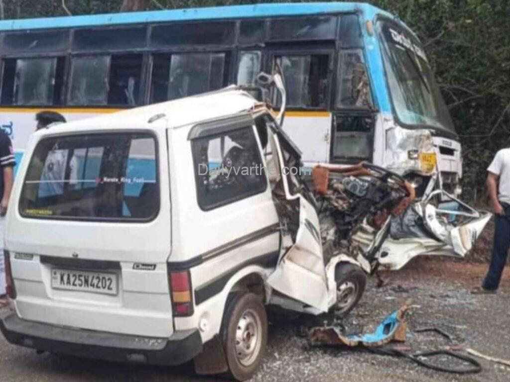 ಬಸ್, ಓಮಿನಿ ನಡುವೆ ಭೀಕರ ಅಪಘಾತ – ಚಾಲಕ ದುರ್ಮರಣ