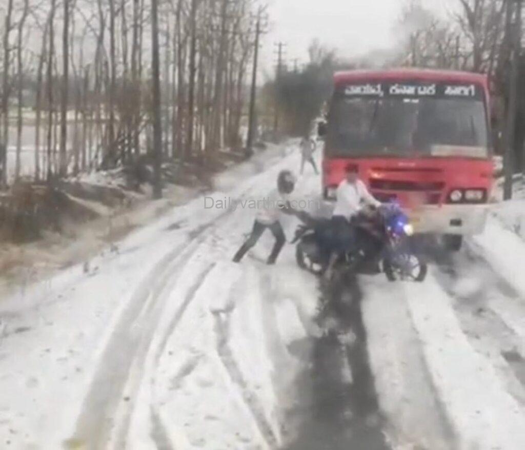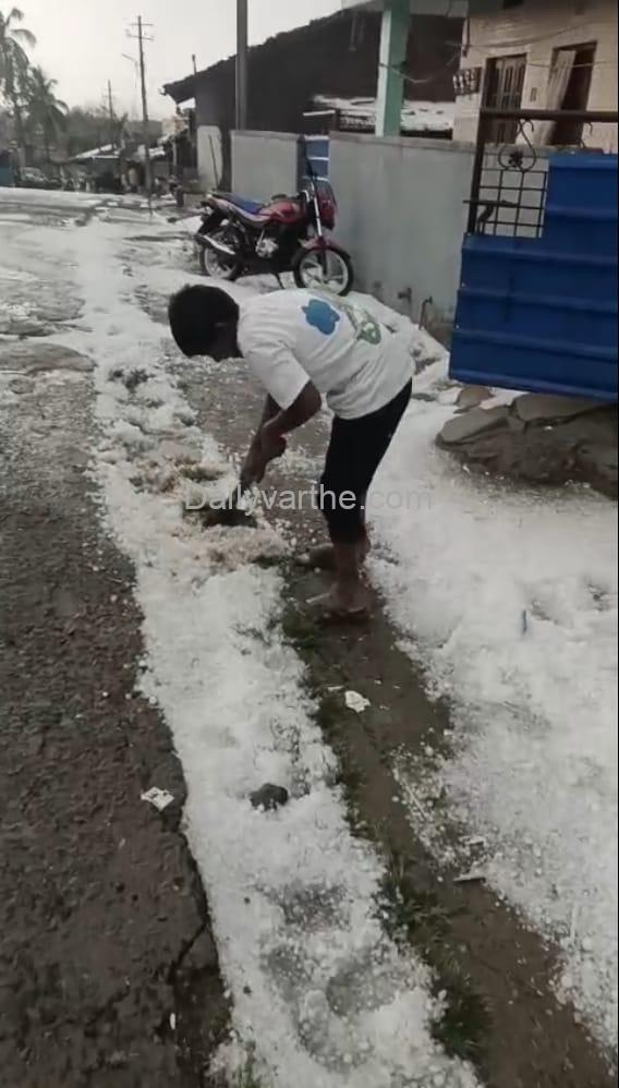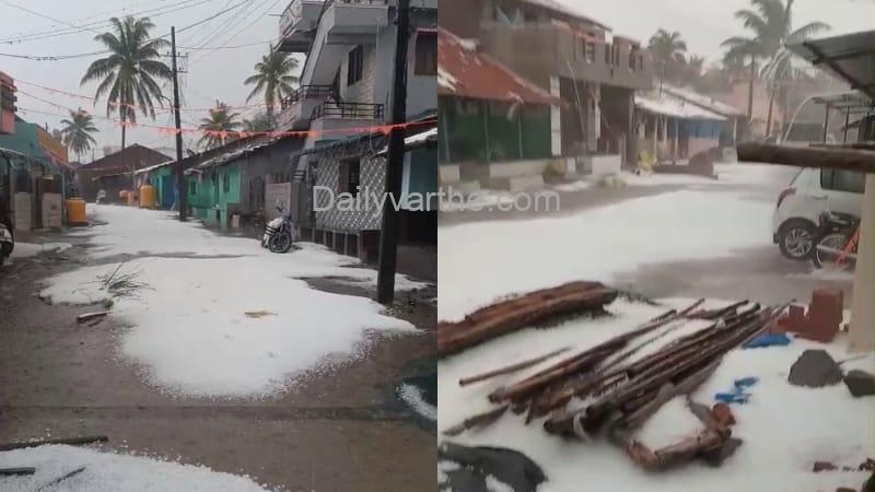 ರಸ್ತೆಗಳು, ಹೊಲಗಳು ಮತ್ತು ಮನೆಗಳ ಮೇಲ್ಭಾಗದಲ್ಲಿ ಬಿದ್ದ ಆಲಿಕಲ್ಲುಗಳು ಬಿಳಿ ಹಾಸಿನಂತೆ ಆವರಿಸಿಕೊಂಡಿದ್ದು, ಕಾಶ್ಮೀರದಂತಹ ದೃಶ್ಯಗಳು ಕಂಡುಬಂದವು.