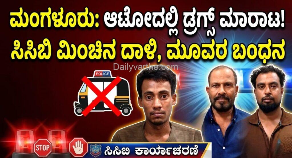 ಮಂಗಳೂರು: ಆಟೋ ರಿಕ್ಷಾದಲ್ಲಿ ಡ್ರಗ್ಸ್ ಮಾರಾಟ; ಸಿಸಿಬಿ ಪೊಲೀಸರ ಮಿಂಚಿನ ದಾಳಿ, ಮೂವರ ಬಂಧನ