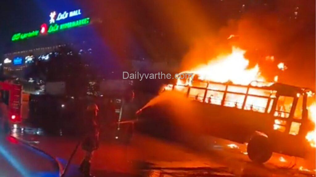 ಬೆಂಗಳೂರು: ರಾಜಧಾನಿಯ ಜನನಿಬಿಡ ಪ್ರದೇಶವಾದ ಲುಲು ಮಾಲ್ ಮುಂಭಾಗದಲ್ಲಿ ಗುರುವಾರ ರಾತ್ರಿ ಕೆಎಸ್ಆರ್ಟಿಸಿ ಬಸ್ಸೊಂದು ಬೆಂಕಿಗಾಹುತಿಯಾದ ಭೀಕರ ಘಟನೆ ನಡೆದಿದೆ.