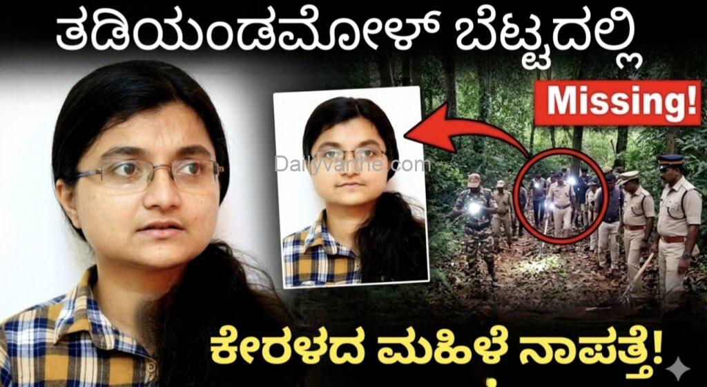 ತಡಿಯಂಡಮೋಳ್ ಬೆಟ್ಟದಲ್ಲಿ ಕೇರಳದ ಮಹಿಳೆ ನಾಪತ್ತೆ: 4ನೇ ದಿನವೂ ಮುಂದುವರಿದ ತೀವ್ರ ಶೋಧ