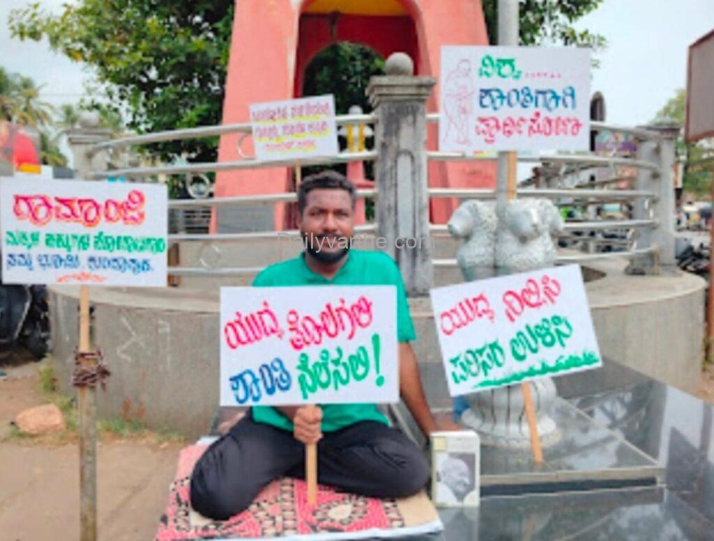 ಮಧ್ಯ ಏಷ್ಯಾದ ನರಹತ್ಯೆ ವಿರುದ್ಧ ಉಡುಪಿಯಲ್ಲಿ ಮೊಳಗಿದ ಶಾಂತಿ ಮಂತ್ರ: ರಂಗಕರ್ಮಿ ರಾಮಾಂಜಿ ಏಕಾಂಗಿ ಸತ್ಯಾಗ್ರಹ