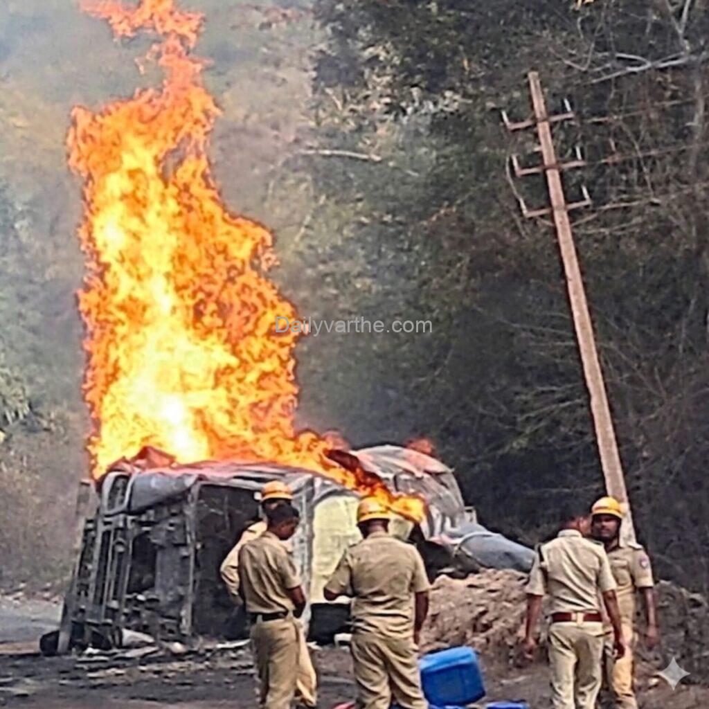 ಅಂಕೋಲಾ: ರಾಷ್ಟ್ರೀಯ ಹೆದ್ದಾರಿಯಲ್ಲಿ ರಾಸಾಯನಿಕ ಟ್ಯಾಂಕರ್ ಸ್ಫೋಟ – ಚಾಲಕನಿಗೆ ಗಂಭೀರ ಗಾಯ
