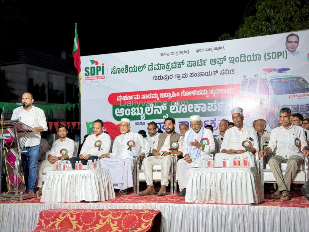 ಮಂಗಳೂರು: ಸೋಶಿಯಲ್ ಡೆಮೊಕ್ರಟಿಕ್ ಪಾರ್ಟಿ ಆಫ್ ಇಂಡಿಯಾ ಗುರುಪುರ ಗ್ರಾಮ ಪಂಚಾಯತ್ ಸಮಿತಿ ವತಿಯಿಂದ ಮರ್ಹೂಮ ಸಾರಮ್ಮ ಇಬ್ರಾಹಿಂ ಗೋಳಿಪಡ್ಪು ಸ್ಮರಣಾರ್ಥ ಆಂಬ್ಯುಲೆನ್ಸ್ ಲೋಕಾರ್ಪಣೆ ಕಾರ್ಯಕ್ರಮ ಅಡ್ಡೂರು ಜಂಕ್ಷನ್ ನಲ್ಲಿ ನಡೆಯಿತು